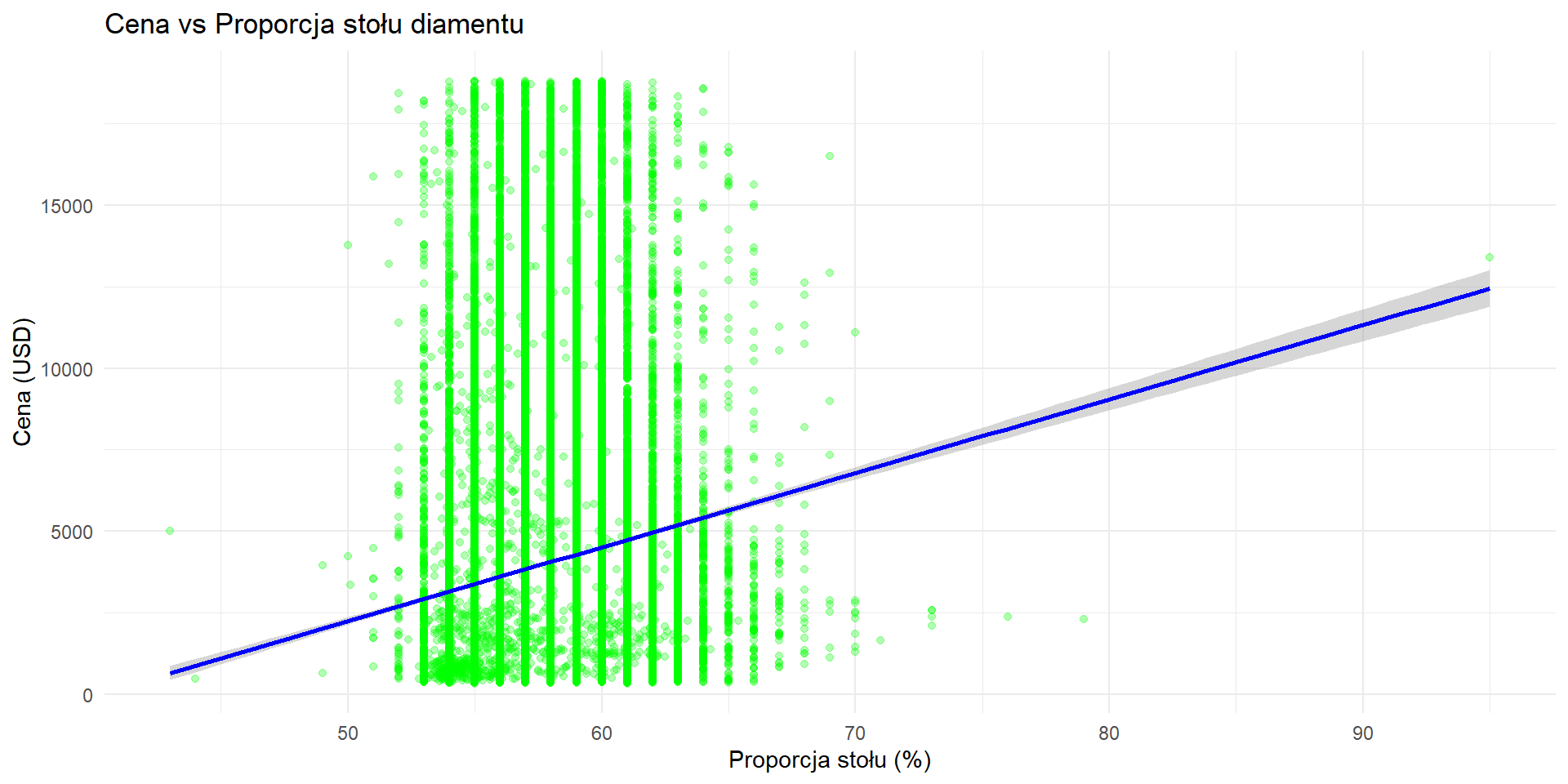 Zależność między ceną a proporcją stołu diamentu
